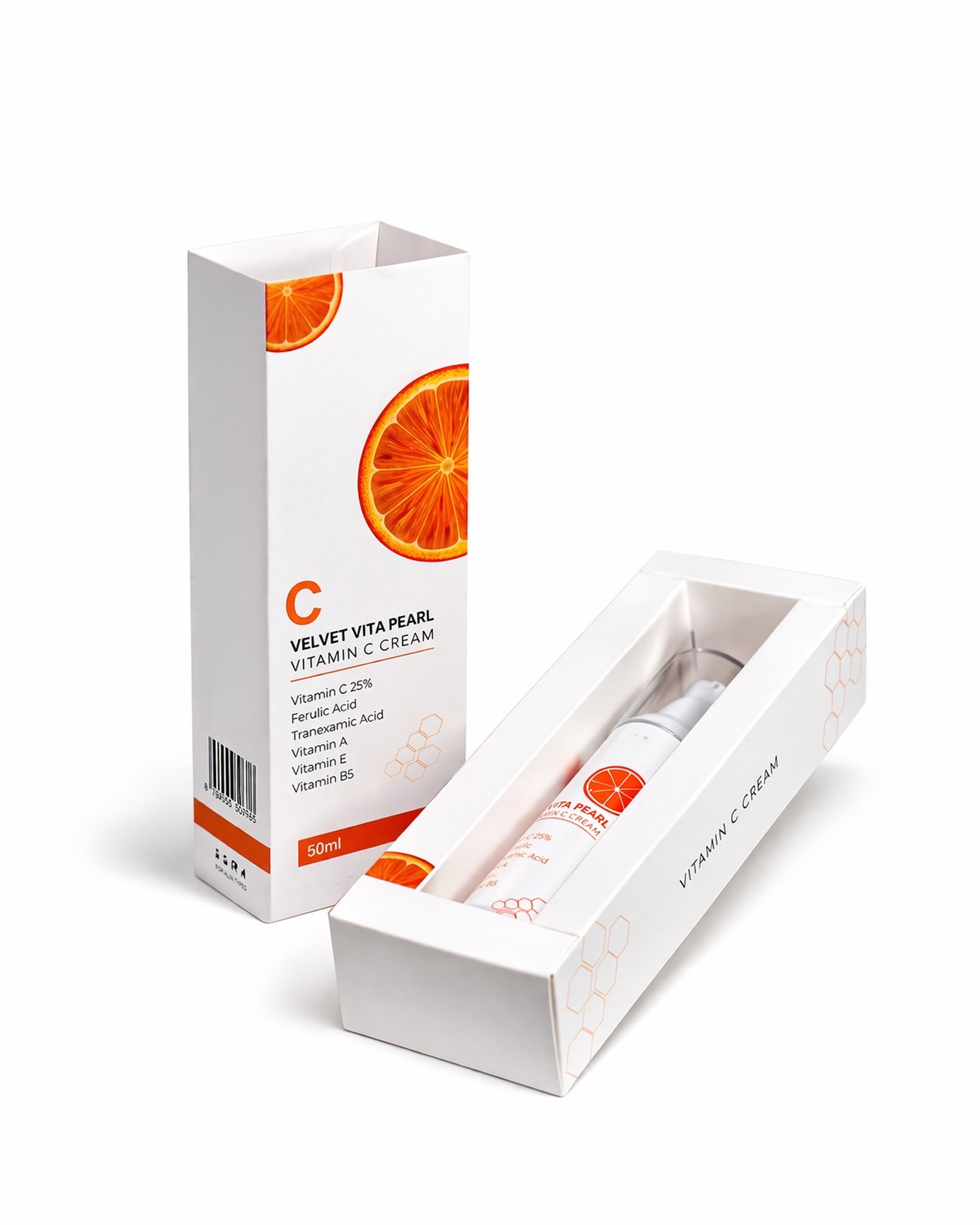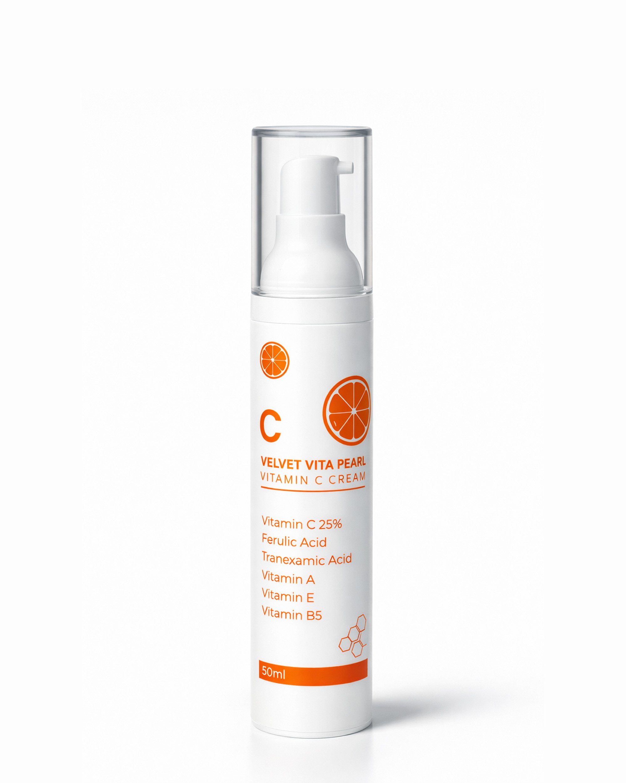Velvet Vita Pearl Vitamin C Cream is an advanced, high-performance formula designed to transform dull skin into a vibrant, youthful complexion. Powered by a potent blend of concentrated Vitamin C, restorative acids, and natural oils, this cream works to brighten skin tone, reduce the appearance of fine lines, and enhance elasticity while providing long-lasting, deep hydration.
